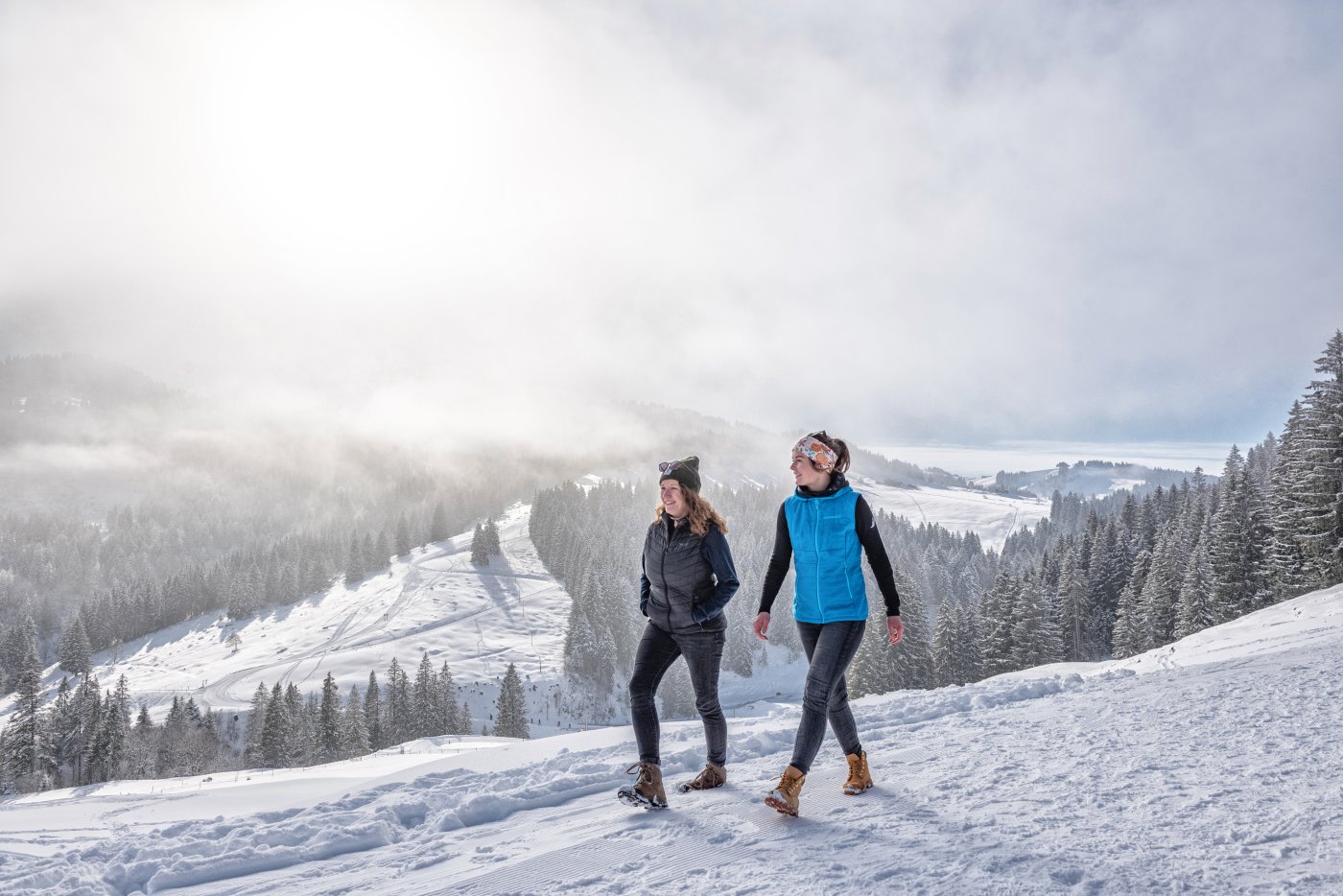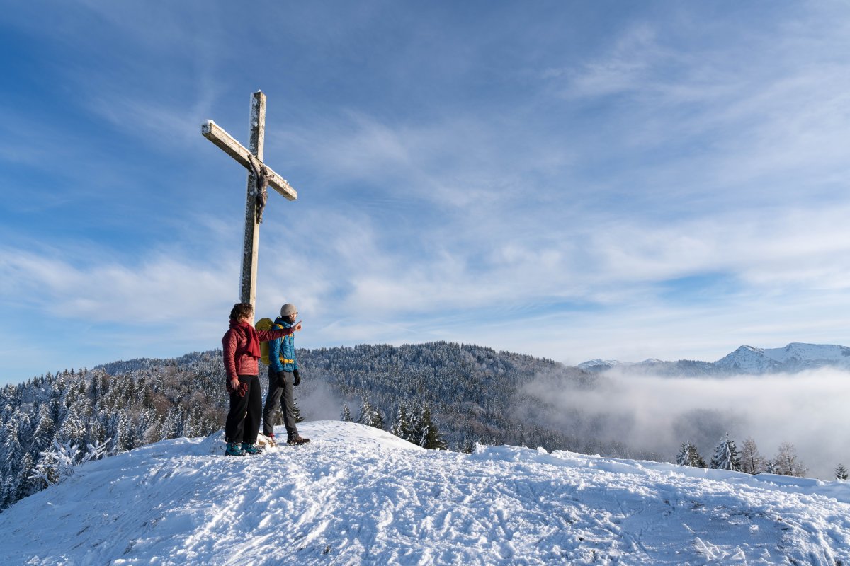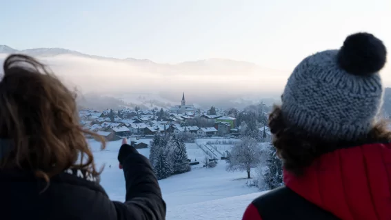 Die Winterwanderung am Imberg beginnt an der Bergstation der Imbergbahn. Von dort führt ein gut präparierter Winterwanderweg in einer entspannten Runde über sonnige Höhen mit herrlichen Ausblicken auf den Alpsee und die Nagelfluhkette. Die Tour ist ideal für Genießer, da sie ohne große Steigungen auskommt und dennoch viel Panorama bietet.